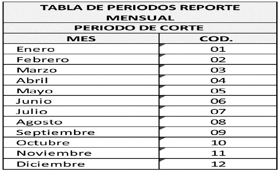PP: Periodo de corte de la información reportada (Ver tabla Períodos de Reporte)