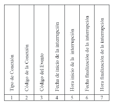 7. Hora finalización de la Interrupción: Hora, en formato HH:MM:SS, en que se superó la interrupción declarada.