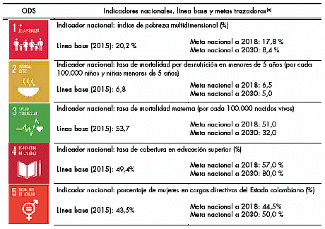| Tabla 2. Metas trazadoras para cada ODS, 2018 y 2030 | 33 |