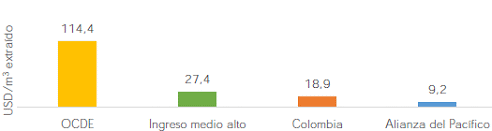 43. La productividad en el uso del agua se define como la relación entre el valor del PIB y volumen de agua dulce extraída. La metodología con la que se calcula la productividad del agua por parte del Banco Mundial difiere de la usada por parte del DANE, principalmente por las diferencias de aplicación en el concepto de agua extraída. Además, el DANE utiliza fuentes de información más precisas en relación con la extracción de agua de los sectores económicos disponibles y por consiguiente, no utiliza el total del PIB, sino el valor agregado de los sectores para los cuales cuenta con esta información.