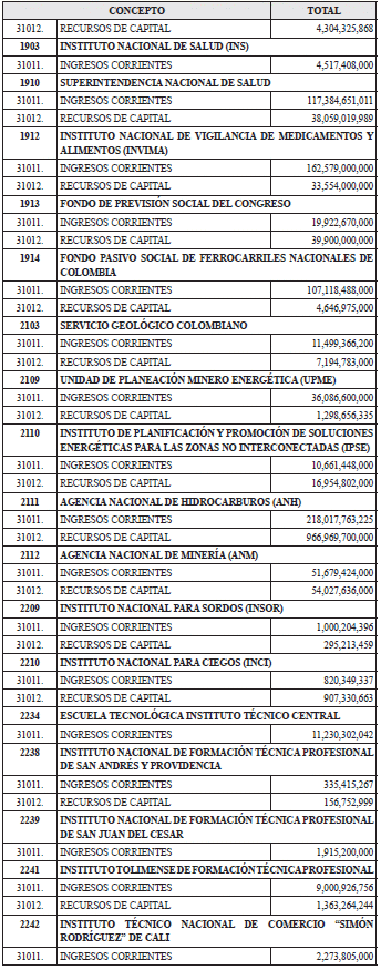 RENTAS DEL PRESUPUESTO GENERAL DE LA NACIÓN