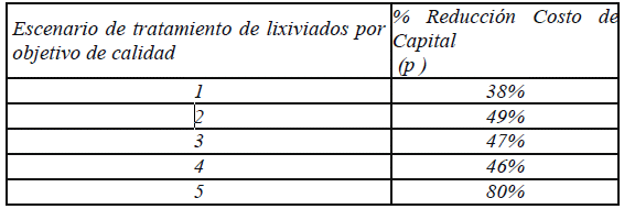 Costo de Tratamiento de Lixiviados con Aporte Bajo Condición (CTLABC) Cuando el valor total de los activos es aportado por una entidad pública, la proporción de costo de capital en que se reduciría el costo total por tonelada dispuesta (CTL), de acuerdo con el escenario de tratamiento de lixiviados por objetivo de calidad, es: