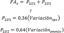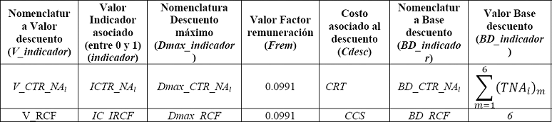 En la siguiente tabla se presenta la nomenclatura y los valores que adquieren los parámetros de cálculo de la fórmula general del valor de descuento, dependiendo del descuento que se esté analizando y su correspondiente indicador de supervisión.
