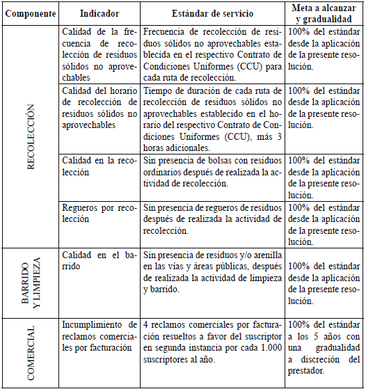 | Parámetros asociados a la interacción entre insumos y productos del prestador de aseo. | |