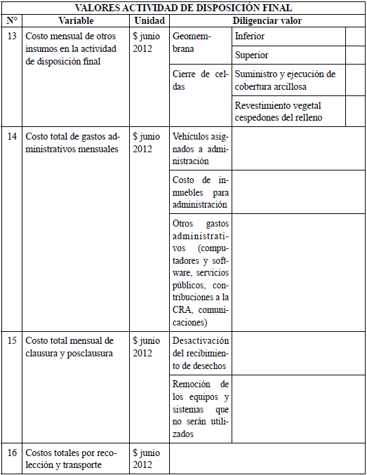 | w12: Precio mensual del capital en la actividad de disposición final. | |