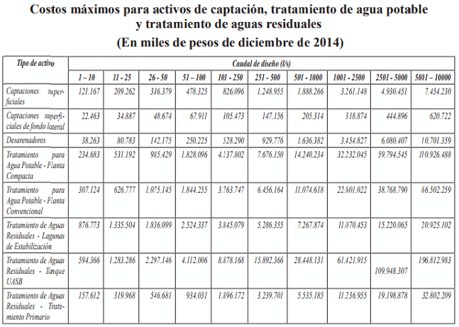 Teniendo en cuenta lo anterior, se presentan los máximos costos establecidos por la Comisión para los diferentes componentes de los sistemas de acueducto y alcantarillado, los cuales deben ser empleados por parte de las personas prestadoras para verificar que sus costos totales se encuentren por debajo de los valores que se exponen en las siguientes tablas: