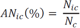 | ANic: | Porcentaje de suscriptores del prestador i de recolección y transporte, en el área de confluencia. Corresponderá a la relación entre el número de suscriptores de cada prestador del servicio público de aseo y el número total de suscriptores atendidos por los prestadores, dentro de esta área, de acuerdo con la siguiente expresión. |