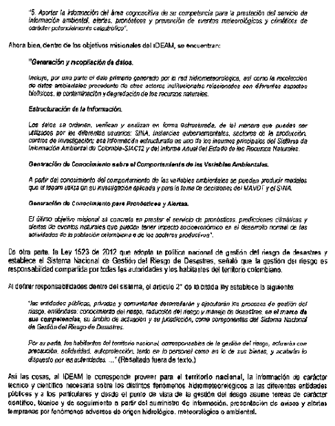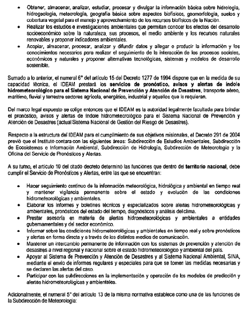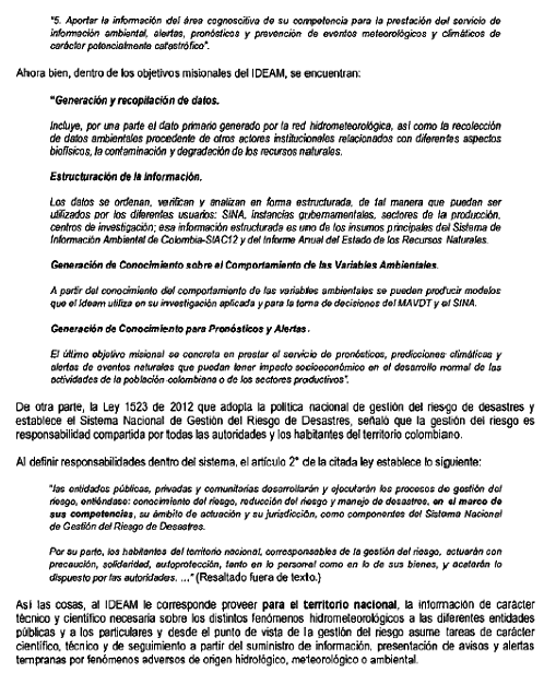 Si llegase a darse una situación anómala extrema, que tenga que ver con la afectación en el comportamiento de las precipitaciones y los niveles de los ríos en el territorio nacional, informaremos a ustedes de dicha situación para la toma de medidas pertinentes”. (Subrayado por fuera del texto original);