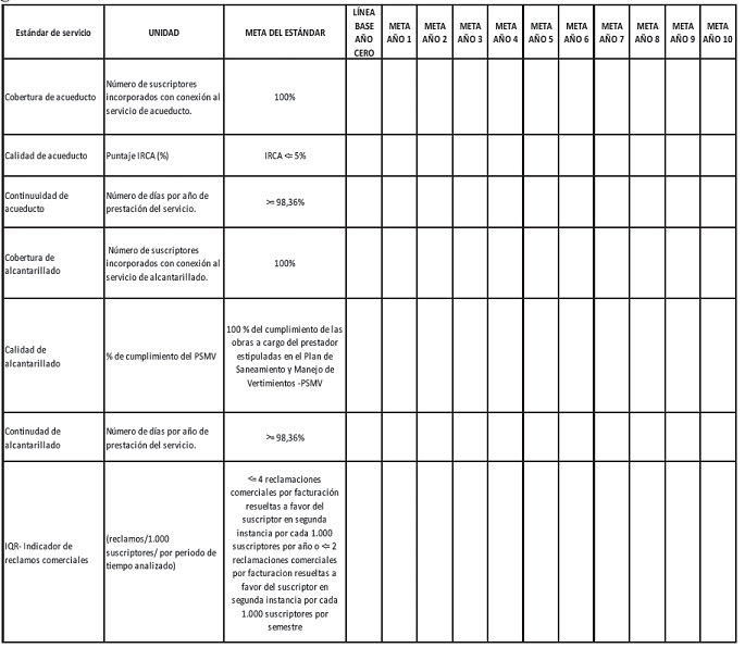 <Anexo integrado y unificado en el Anexo 6.1.6.1 de la Resolución CRA 943 de 2021. Debe tenerse en cuenta lo dispuesto por el artículo 2.3.6.3.3.12 del Decreto 1077 de 2015>