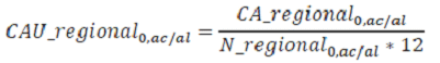 CAU_am*ac/al: Costo administrativo eficiente estándar por suscriptor mensual para cada servicio público domiciliario, expresado en pesos de diciembre del año base del mercado regional, obtenido por la APS con el mayor número de suscriptores en aplicación del ARTÍCULO 26 de la Resolución CRA 688 de 2014.