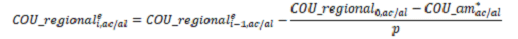 b) En el evento que la solicitud del mercado regional se realice antes del 2021, para proyectar el COU_regionalf del año uno (1) hasta el año 2020 se deberá aplicar la siguiente fórmula: