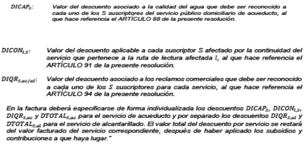 DICAPS: Valor del descuento asociado a la calidad del agua que debe ser reconocido a cada uno de los S suscriptores del servicio público domiciliario de acueducto.