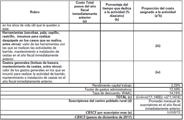 | RPDF | Recursos a percibir por concepto de disposición final. (Pesos/mes). |