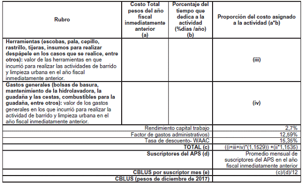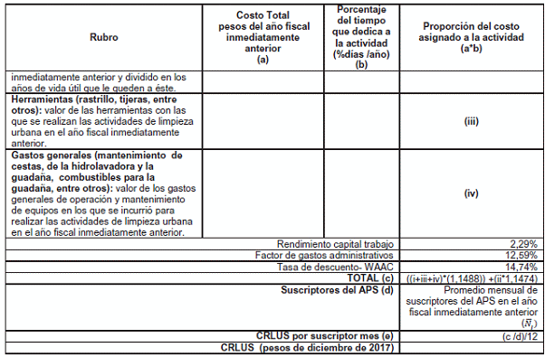- Cantidad estimada de toneladas de residuos sólidos recolectadas y transportadas en el APS de la persona prestadora j (toneladas/mes) de la siguiente manera: