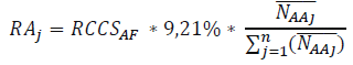 | RAj | Recursos provenientes del recaudo de suscriptores aforados por concepto del CCS para las personas prestadoras de aprovechamiento j ($/mes). |