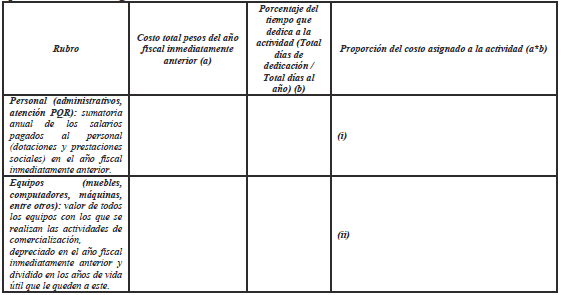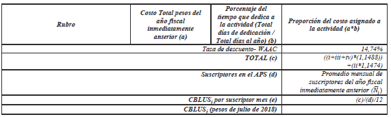 Costo de Comercialización por Suscriptor Unificado para todo el esquema de prestación regional será el resultante de la aplicación de los siguientes rubros (pesos de julio de 2018/mes):