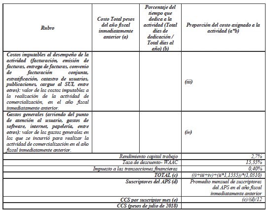 “Artículo 88. Costo de Comercialización por Suscriptor del Servicio Público de Aseo (CCS). El costo de comercialización por suscriptor del servicio público de aseo, será el resultante de la aplicación de los siguientes rubros (pesos de julio de 2018/suscriptor-mes):