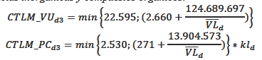Costo máximo a reconocer por tratamiento de lixiviados por tonelada (pesos de julio de 2018/tonelada). El costo máximo de tratamiento de lixiviados por metro cúbico (CTLMd) se estimará con las siguientes funciones a continuación según los respectivos escenarios por objetivo de calidad.
