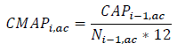 CMAPi,ac: Costo medio de administración por inversiones ambientales adicionales para la protección de cuencas y fuentes de agua para el año i del servicio público domiciliario de acueducto, expresado en pesos de diciembre del año base ($/suscriptor/ mes).
