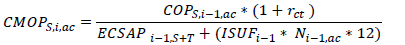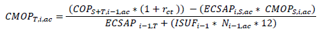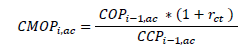 CMOPi,ac: Costo medio de operación por inversiones ambientales adicionales para la protección de cuencas y fuentes de agua para el año i, expresado en pesos de diciembre del año base/m3.