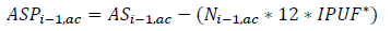 ASi–1,ac: Agua potable suministrada en el año i-1 (m3/año). Se calcula como: