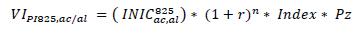 VIPI825,ac/al: Valor por cobrar del plan de inversiones de la Resolución CRA 825 de 2017. El VIPI825,ac/al se debe calcular según lo indicado en el numeral 7 del presente capítulo.