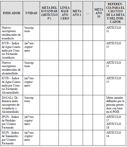 Para el cálculo de los costos de referencia se deben definir las metas anuales para los años 1 a 10, teniendo en cuenta los estándares de eficiencia establecidos en la presente resolución.