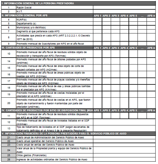 Que en consecuencia, se establece un único formulario de solicitud de información que deberán reportar al Sistema Único de Información (SUI) todas las personas prestadoras del servicio público de aseo en las actividades de recolección y transporte de residuos sólidos no aprovechables y de disposición final en municipios con más de 5.000 suscriptores;