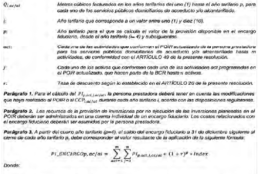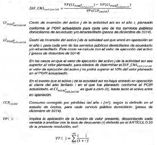 "ARTÍCULO 109. Provisión de recursos por no ejecución de las inversiones planeadas en el POlR Una vez finalizado el cuarto año tarifario, y en los años subsiguientes, la provisión de recursos por no ejecución de las inversiones planeadas en el Plan de Obras e Inversiones Regulado - POlR, se determinará con base en la siguiente fórmula: