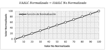 | ESTANDAR DE MEDICIÓN (No Normalizado) | IIAALC = 100%. Para valores superiores al estándar de medición, se asume cumplido el 100%. |