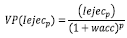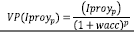 | FÓRMULA | Para el cálculo del indicador se aplicará la siguiente fórmula: Donde: IIAAC-.p:índice de Inversiones Acumuladas de Acueducto, redondeado a dos (2) cifras decimales. p: Año tarifario, en el que se prestó el servicio público domiciliario de acueducto, donde p = {1,2,3at}. Para el efecto del cálculo de este indicador se entenderá como año 1, el año en que se haya iniciado la ejecución del plan de inversiones proyectado por el prestador y at el período tarifario que finaliza en el período de evaluación del indicador. VPIejeCp. Valor presente de los recursos ejecutados en el plan de inversiones del servicio público domiciliario de acueducto en el período de evaluación p (expresado en pesos del año base). Corresponden a las erogaciones realizadas por el prestador sin discriminación del avance del proyecto y/o inversión, ya sea que la misma se encuentre "en curso' o "finalizada". Para el cálculo de esta variable se aplicará la siguiente fórmula: Donde; lejecp: Recursos ejecutados del plan de inversiones con el que calculó las tarifas del servicio público domiciliario de acueducto en el período de evaluación p, expresadas en pesos del año base de la metodología tarifaria vigente. Para lo cual deberá emplear el índice de Predos al Consumidor - IPC, publicado y calculado por el Departamento Administrativo Nadonal de Estadísticas (DANE). wacc: Tasa del costo promedio ponderado de capital regulatorio, de acuerdo con el marco tarifario que le aplique a la persona prestadora. VPIproyp: Valor presente de las inversiones proyectadas del plan de inversiones del servicio público domiciliario de acueducto desde el período de evaluadón (expresado en pesos del año base). Para el cálculo de esta variable se aplicará la siguiente fórmula: Donde: lproyp: Inversiones proyectadas del plan de Inversiones con el que calculó las tarifas del servido público domiciliario de acueducto, para el período de evaluación p, expresadas en pesos del año base de la metodología tarifaria vigente. Para la aplicación de esta fórmula se debe tener en cuenta los siguientes aspectos: - Se debe utilizar el POIR actualizado de que trata el parágrafo 1 del artículo 109 de la Resolución CRA 688 de 2014, modificado por el artículo 1o de la Resolución CRA 938 de 2020(1). - En el caso que el prestador cuente con recursos ejecutados en Inversiones compartidas entre Áreas de Prestadón del Servicio - APS, se aplicará la distribución de dichos recursos por APS aplicando los mismos criterios que el prestador consideró en la elaboración del plan de inversiones o POIR. Si no se realizó dicha distribución, la distribución de los recursos ejecutados y proyectados se realizará a partir del número de suscriptores atendidos por el prestador en cada APS benefidada en el último período de facturación del año tarifario. - SI la persona prestadora ha proyectado un plan de Inversiones y no ha reportado ejecudón de recursos, el Indicador será calificado como cero (0). - El indicador es aplicable a prestadores que empleen una fórmula tarifaria contractual en los términos del parágrafo 1 del artículo 87 de la Ley 142 de 1994, lo anterior, de acuerdo con el alcance de lo previsto en el contrato. Para el caso en que no se especifique un WACC en el contrato, se empleará el WACC regulatorio para el cálculo del indicador de estos prestadores. |
