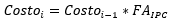 Una vez actualizado el costo económico de referencia de los servicios públicos domiciliarios de acueducto y alcantarillado, las personas prestadoras podrán aplicar un factor de actualización por IPC cada vez que el Índice de Precios al Consumidor (IPC), reportado por el DANE, acumule una variación de por lo menos tres por ciento. Las personas prestadoras deberán iniciar las acumulaciones del IPC desde la fecha de aplicación de la presente fórmula tarifaria, de conformidad con la siguiente fórmula: