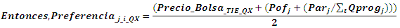 Si (Qprog j – Qideal j) < 0 entonces Preferencia_j = (Precio_Bolsa_e +(Pofj)/2