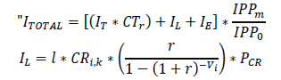 Costo mensual de las inversiones en activos que no son clasificables como UC del OR j, aplicable para los planes de reducción de pérdidas. Se calcula dividiendo la variable