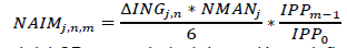 c) Se obtendrá el promedio simple de los dos días hábiles de cada mes. Posteriormente se debe ponderar dicho valor con la cantidad de días hábiles del mes que corresponda. Se ponderará el valor obtenido para el día sábado de un mes determinado con la cantidad de sábados de dicho mes y el valor obtenido para el día domingo con la cantidad de domingos y festivos del mes. Se deben sumar los tres valores obtenidos y dividirlos entre el número de días del mes para encontrar el índice de cada mes;