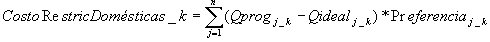CostoResticDomésticas_k: Costo de las Restricciones para el período k, para la demanda total doméstica, calculado con el procedimiento descrito para Costo_Medio_Restricciones_k (Anexo 3).