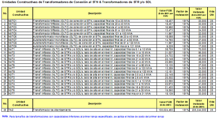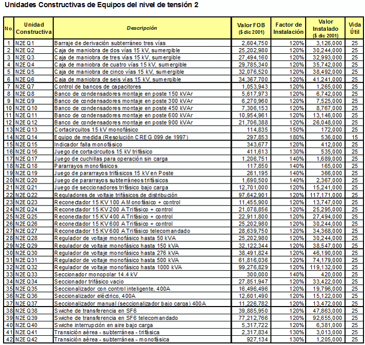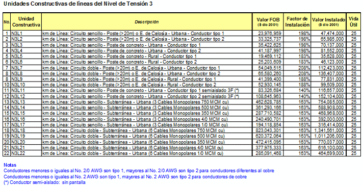 a) Los cargos de los Sistemas de Transmisión Regional o de los Sistemas de Distribución Local, diferentes al Nivel de Tensión 1, se determinarán a partir de los inventarios de los OR, de acuerdo con las Unidades Constructivas que se presentan en el Anexo 3. Los OR podrán presentar Unidades Constructivas especiales no contempladas en el Anexo 3, para lo cual deberán suministrar la información correspondiente, de acuerdo con las Circulares expedidas por la Comisión;