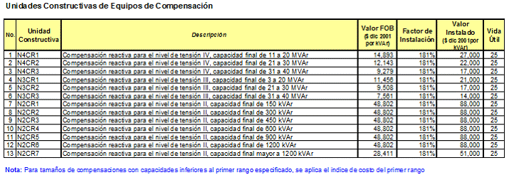 CMET4: Cargo Máximo Eficiente Transformado para activos diferentes a líneas radiales en el Nivel de Tensión 4 ($/kWh colombianos del mes de diciembre de 2001).