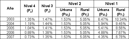 A continuación se presentan los porcentajes de pérdidas a reconocer para cada año del período regulatorio, en cada Nivel de Tensión: