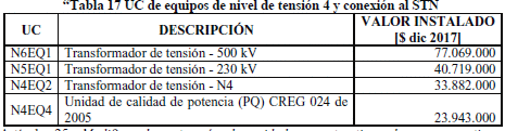 “Tabla 8. UC de módulos de transformador de conexión al STN y Otros