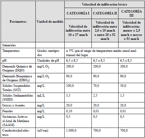 En caso que el régimen de humedad sea Ácuico o Perácuico y/o el orden taxonómico sea Histosol, Andisol o Molisol, independiente del valor de la velocidad de infiltración básica, se aplicará la Categoría III, para el área de disposición del vertimiento en el suelo de ARD-T.