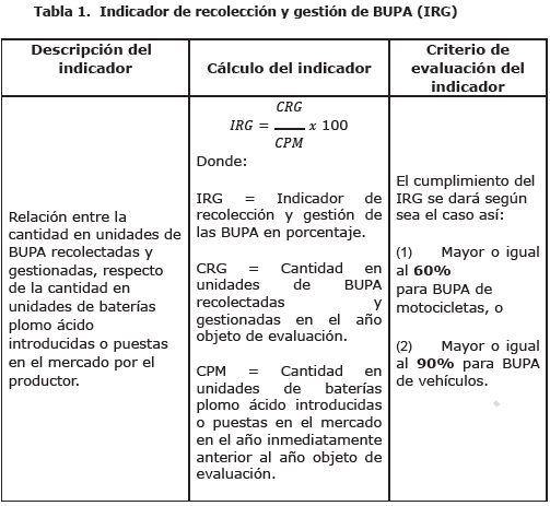 Sistema de Recolección y Gestión de BUPA. Instrumento de control y manejo ambiental que contiene los requisitos y condiciones para garantizar la recolección y gestión ambiental de BUPA por parte de los productores, anteriormente denominados Planes de Gestión de Devolución de Productos Posconsumo de Baterías Usadas Plomo Ácido.