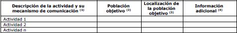 (1) Se debe describir la actividad realizada capacitación, piezas gráficas etc.) y el mecanismo de comunicación utilizado para su difusión (por ejemplo: correo electrónico, página web, redes sociales). Se deberán presentar las evidencias respectivas (piezas o material publicitario, publicaciones en medios impresos, redes sociales, radio, TV, fotos, listas de asistencia, entre otros)