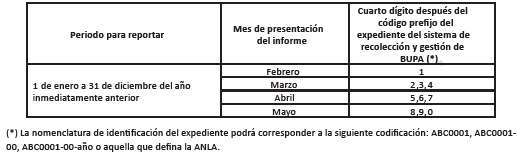 Las siguientes tablas son indicativas y podrán ser ajustadas o adecuadas por la Autoridad Nacional de Licencias Ambientales (ANLA) en la plataforma informática que implemente para tal fin, de acuerdo con las necesidades de captura y procesamiento de la información requerida para la evaluación y el seguimiento a los Sistemas de Recolección y Gestión de BUPA.
