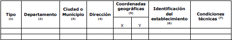 (6) Se debe indicar el nombre del establecimiento donde está ubicado el tipo de mecanismo de recolección, si no tiene se diligencia con NA (No aplica).