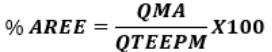 | La meta de aprovechamiento de residuos de envases y empaques de PET | Donde: %AREE = Porcentaje de aprovechamiento de residuos de envases y empaques de PETQMA = Peso Total de residuo aprovechado de PET en el año de evaluación, en toneladas. A. QTEEPM = Peso Total de los envases y empaques y productos plásticos de un solo uso en PET puestos en el mercado en el año base, en toneladas. |