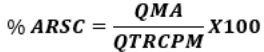 | La meta de aprovechamiento de residuos de plásticos del sector de la construcción. | Donde: %ARSC = Porcentaje de aprovechamiento de residuos del sector de la construcción. QMA = Peso Total de residuo efectivamente transformado o aprovechado en el año de evaluación, en toneladas. QTRCPM = Peso Total de residuos de plásticos del sector de la construcción puestos en el mercado en el año base, en toneladas. |