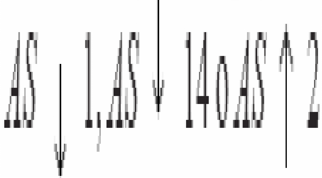 y así sucesivamente. La dirección de la flecha indica la parte del material que cumple el ensayo 2 y el número indica el punto con el que cumple. Esta marcación es adicional a la que se describió anteriormente, que incluye el número del punto apropiado para la parte de la hoja cuya transmitancia no sea inferior a 70%.