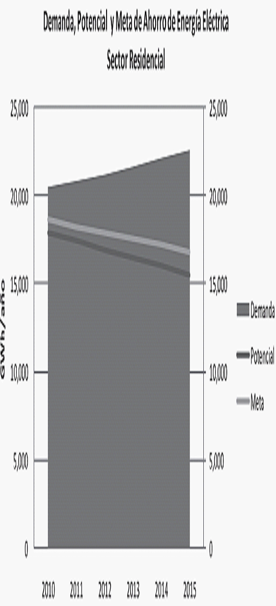 | Sector | Potencial de ahorro de energía a 2015 (%)* | Meta de ahorro de energía a 2015 (%) | ||