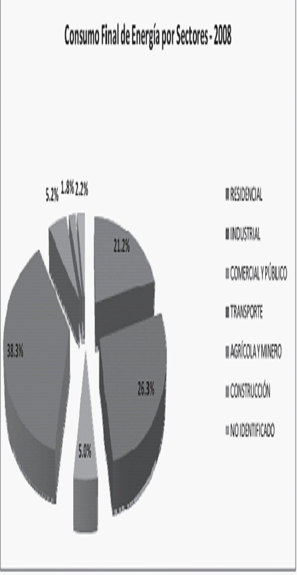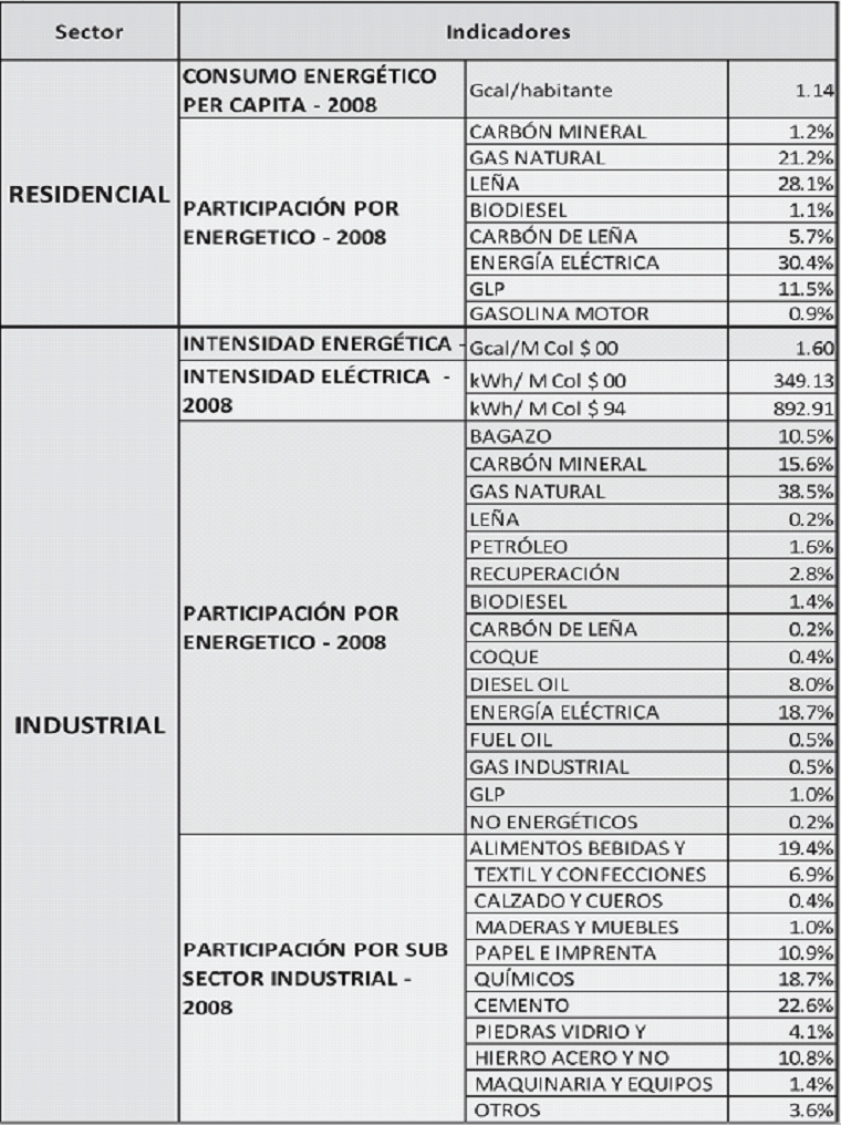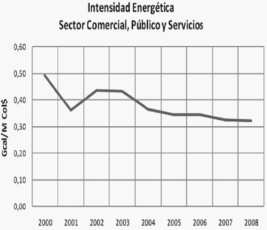 10 La intensidad eléctrica es un indicador que proporciona una idea del consumo de energía eléctrica en el sector en función del PIB. Para Colombia a 2008 este indicador es de 349,13 kWh/M Col$ 00.